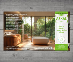 Für ASKAL haben wir aussagekräftige Anzeigen gestaltet, die das Leistungsspektrum des Unternehmens rund um Heizung, Sanitär und erneuerbare Energien prägnant kommunizieren. Mit klarer Bildsprache und modernen Layouts sorgen die Anzeigen für hohe Aufmerksamkeit und einen professionellen Auftritt in den relevanten Medien.
