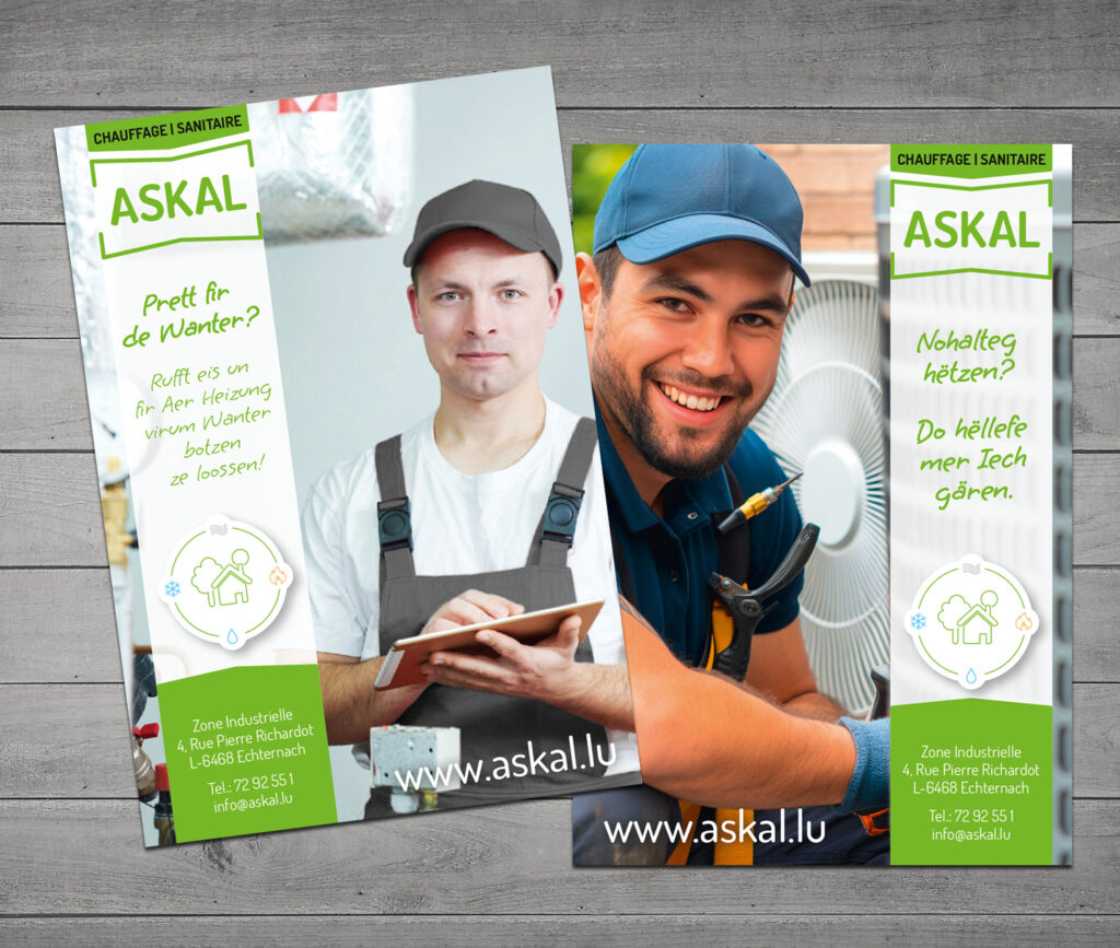 Für ASKAL haben wir aussagekräftige Anzeigen gestaltet, die das Leistungsspektrum des Unternehmens rund um Heizung, Sanitär und erneuerbare Energien prägnant kommunizieren. Mit klarer Bildsprache und modernen Layouts sorgen die Anzeigen für hohe Aufmerksamkeit und einen professionellen Auftritt in den relevanten Medien.