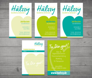 Der Therapeuten-Service Haelssy benötigte auch Visiten- und Terminkarten – auch sie sind in dem verspielten und natürlichen Hälssy-Design.