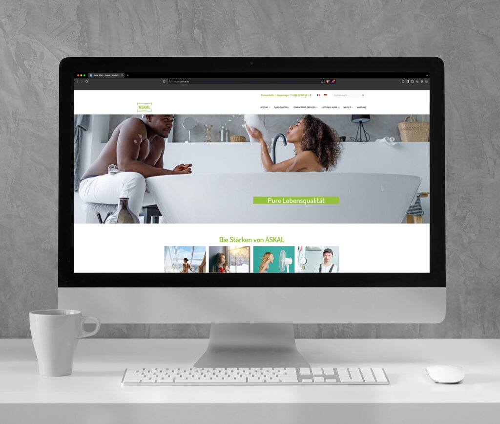 Für ASKAL Chauffage & Sanitaire haben wir eine moderne und übersichtliche Website gestaltet, die das breite Leistungsspektrum des Unternehmens im Bereich Heizung, Bad & Sanitär, Lüftung & Klima, Wasser, Wartung sowie erneuerbare Energien wie Photovoltaik, Wärmepumpen und Solarthermie überzeugend präsentiert. Die klar strukturierte Navigation und hochwertige Bildsprache vermitteln Professionalität und Vertrauen — entsprechend der über 43‑jährigen Erfolgsgeschichte des Unternehmens und der starken lokalen Präsenz in der Region Echternach.